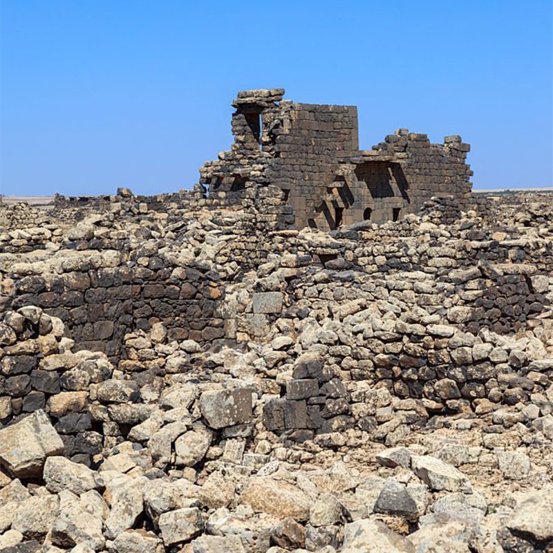 Rising out of Jordan’s northern basalt plain, beautiful Umm al-Jimal is both a modern town and an ancient archaeological site, home to almost 2000 years of fascinating history and culture – Nabataean, Roman, Byzantine, Umayyad, Mamluk, Ottoman and Modern. It was a thriving agricultural center and a stop on the Hijaz to Damascus caravan route. One can explore over 150 well preserved ancient structures, built in neighborhoods along meandering alleys and around hosh-like plazas. Umm al-Jimal is also a modern community with much to offer to its visitors. Your visit to this town will enrich your archaeological experience with a still living Bedouin cultural heritage, in the downtown shops and residents’ homes. Just 90 minutes from Amman by car, a visit to Umm al-Jimal makes an easy day trip that can include other similar sites in Northeast Jordan, or even the Desert Castles.